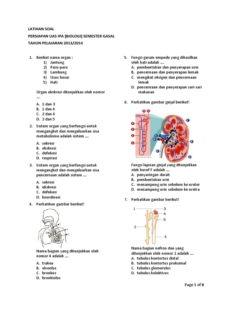 Contoh Soal Sistem Ekskresi Manusia Dan Kunci Jawabannya
