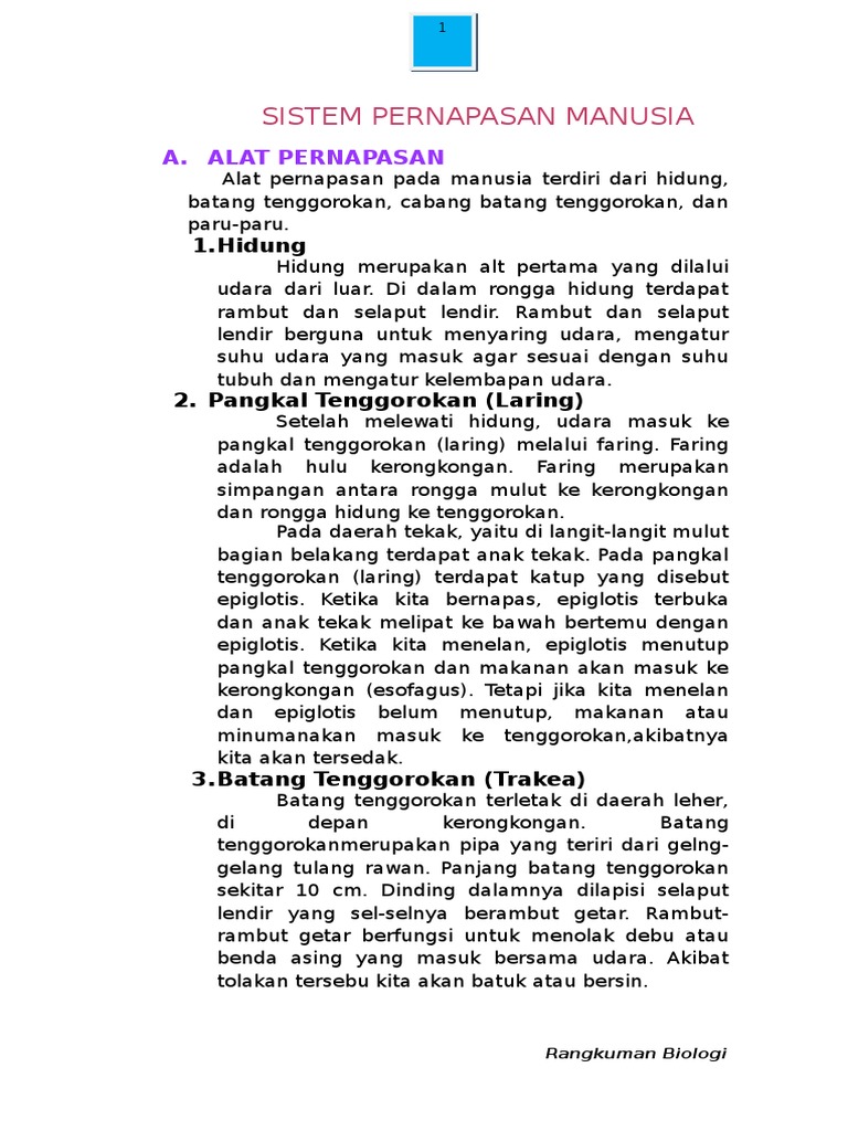 Biologi Sistem Pernapasan Manusia Dan Hewan