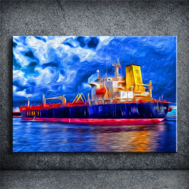 Gaya Biru Kapal Laut Hd Gambar Lukisan Minyak Modern Abstrak Lukisan