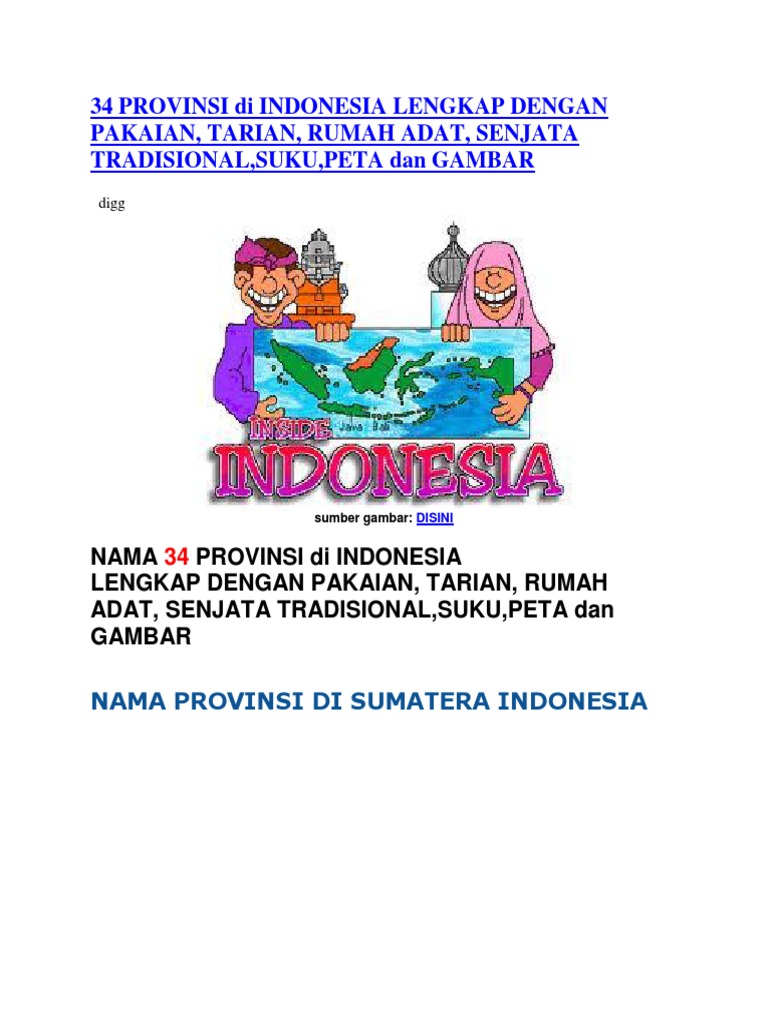 34 provinsi di indonesia lengkap dengan pakaian tarian rumah adat senjata tradisionalsukubahasa daerahpeta dan gambar.