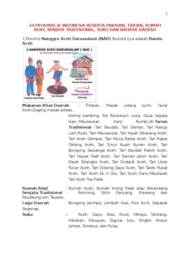 Kebudayaan 34 Provinsi Di Indonesia Docx Teps Tiranet Academia Edu