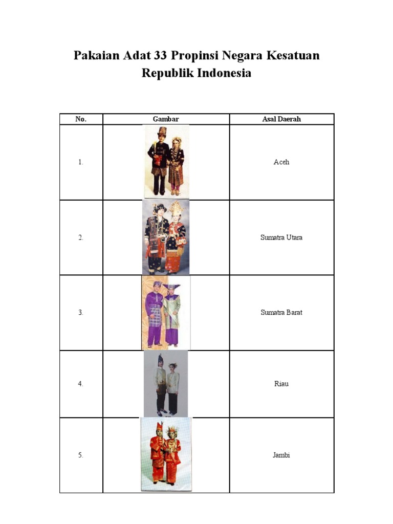 34 Provinsi Di Indonesia Lengkap Dengan Pakaian Docx Document