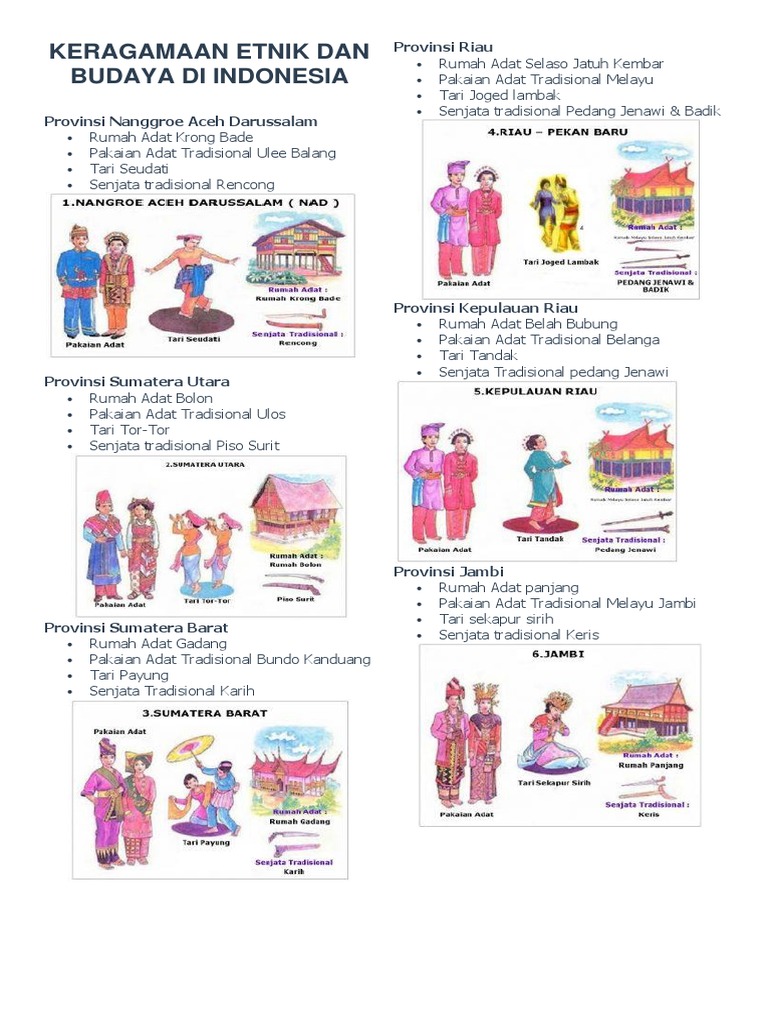 Keragaman Indonesia Rumah Pakaian Tari Dan Senjata Tradisional
