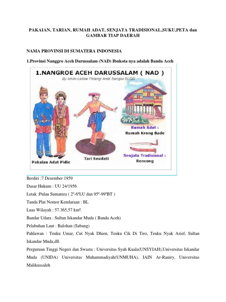 34 Provinsi Di Indonesia Beserta Pakaian Docx