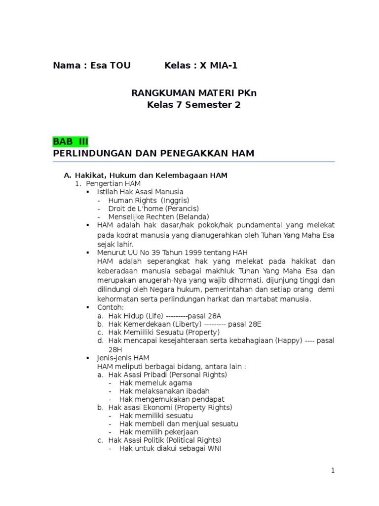 Ringkasan Materi Pelajaran Pkn Smp Kelas Vii Semester 1