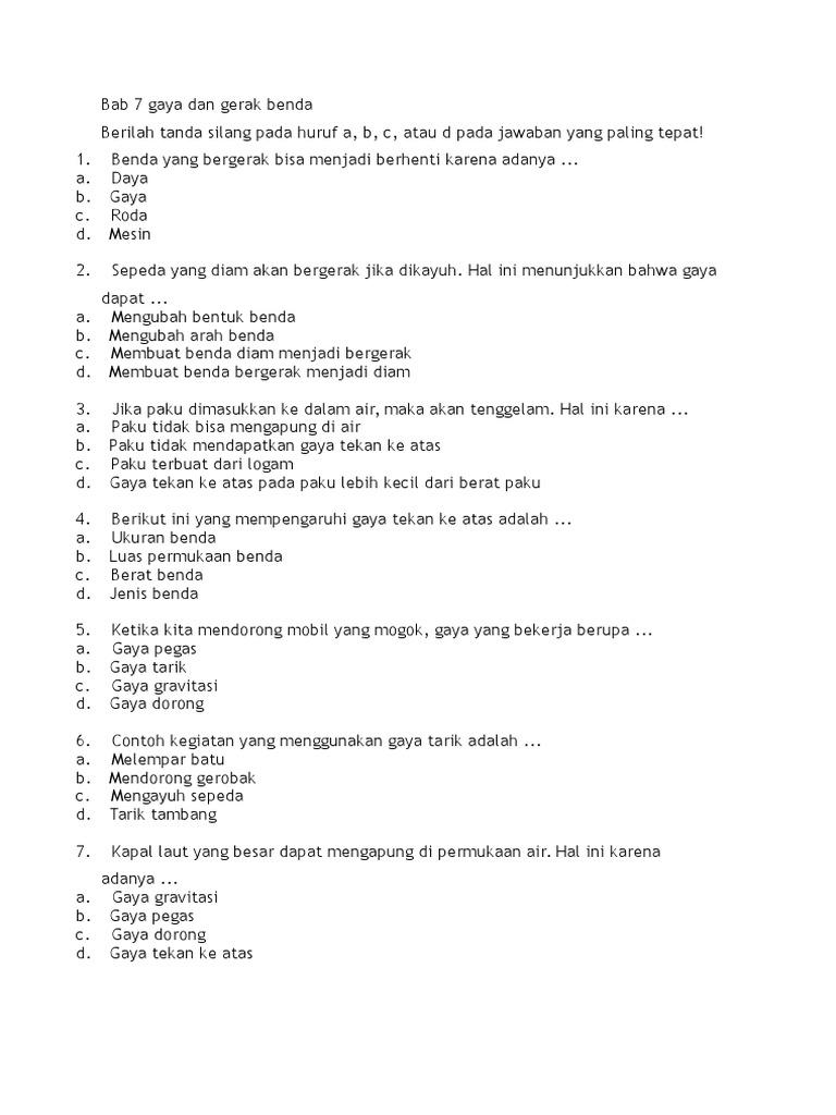 123564395 Soal Bab Gaya Untuk Kelas Iv Sd Pdf