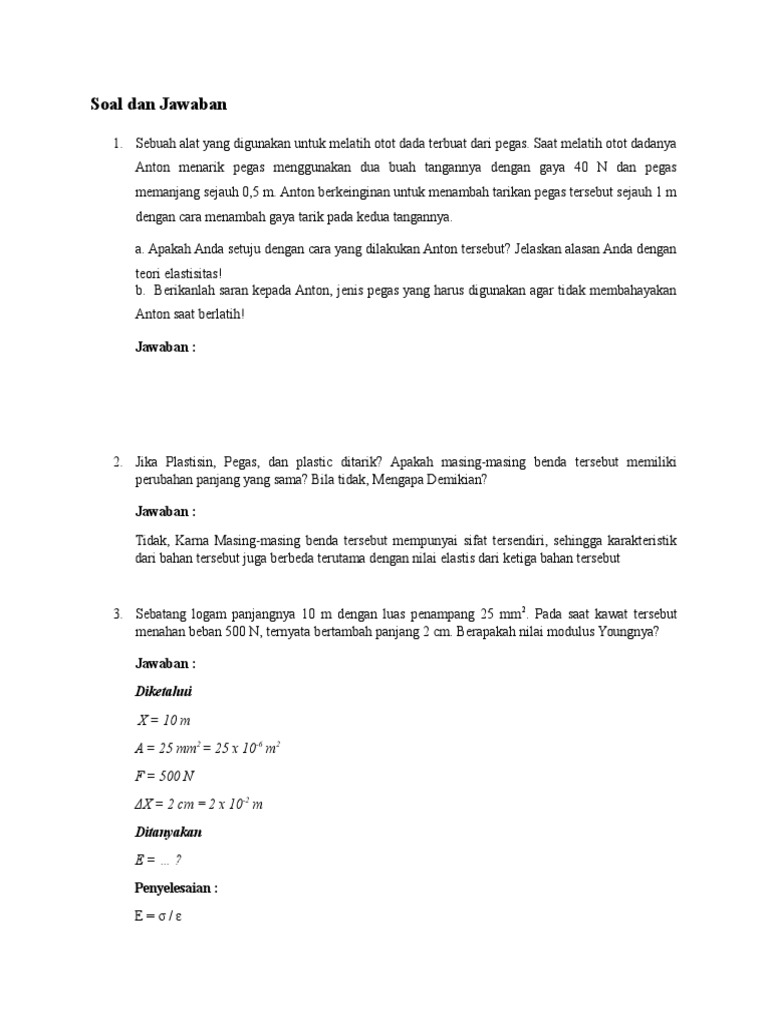 Contoh Contoh Soal Gaya Pegas Sma Beserta Jawabannya Sharing