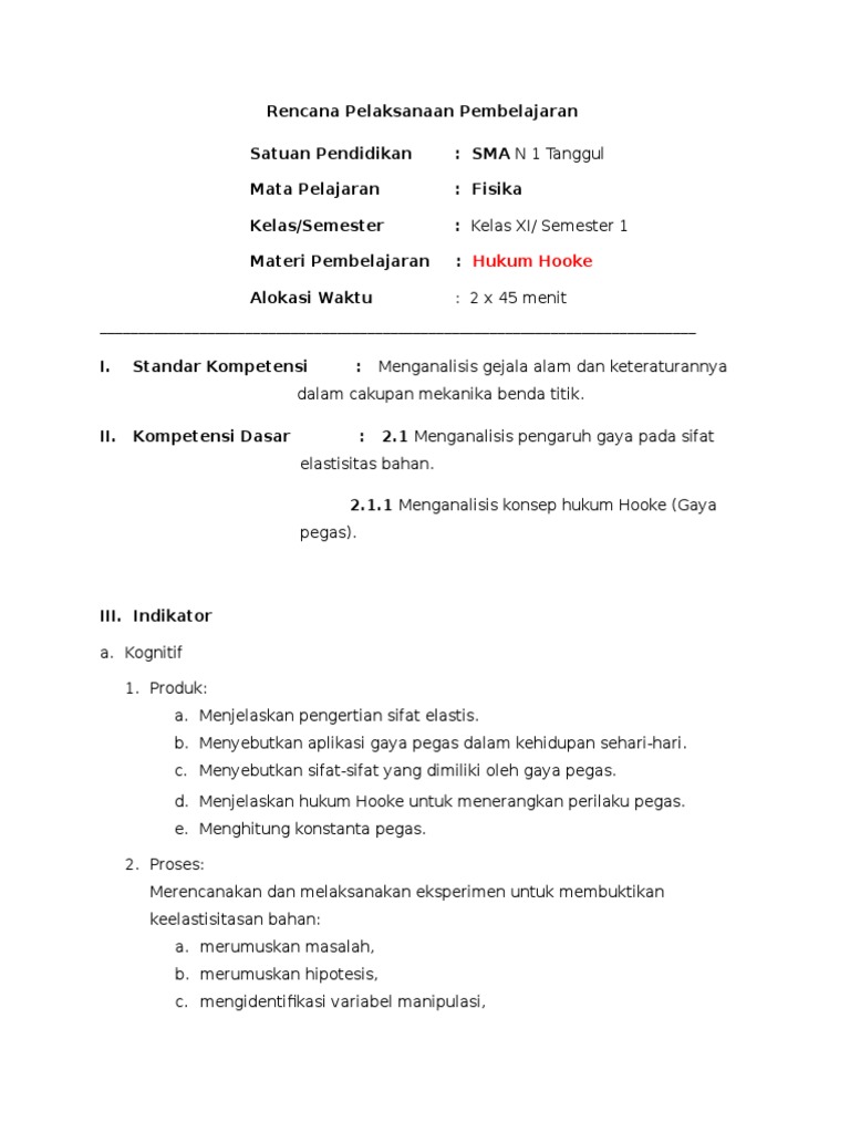 5 Rpp Gaya Pegas Dan Elastisitas Bahan