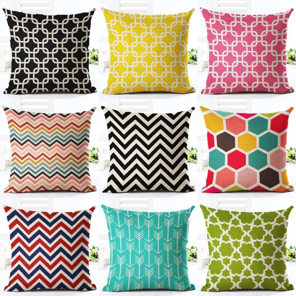 Evi Kralice Cicekler Ve Bitkiler Geometri Keten Yastik Kilifi Ofis