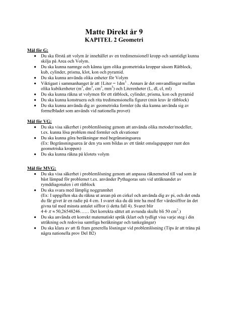 Pedagogisk Planering I Skolbanken Rymdgeometri Ar 9
