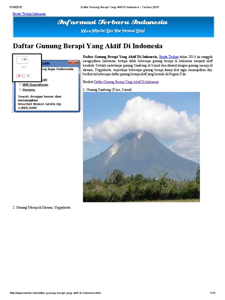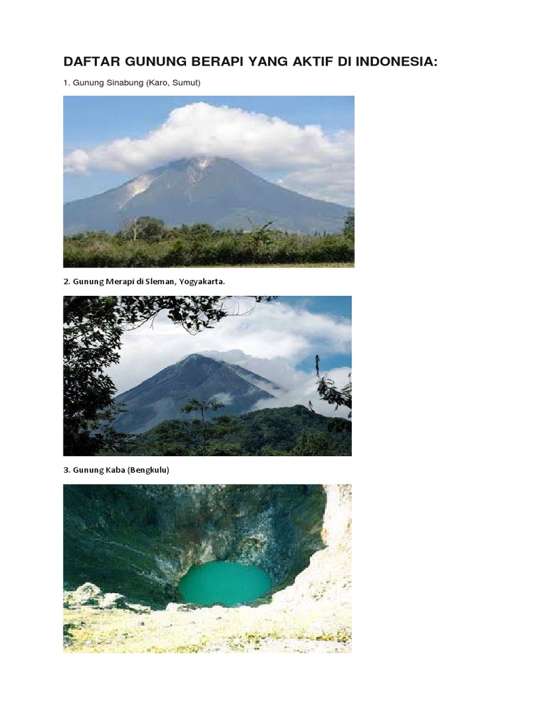 Daftar Gunung Berapi Yang Aktif Di Indonesia Docx