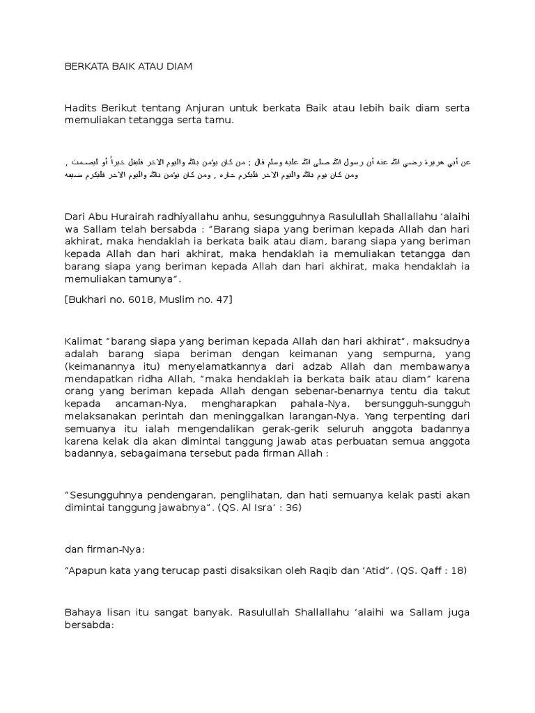 Hadits menghormati tetangga. Akhlak adalah hal yang terpenting dalam. Al barzanji atau berzanji adalah suatu doa doa puji pujian dan penceritaan riwayat nabi muhammad saw yang biasa dilantunkan dengan irama atau nada. Yaitu suara hatinya dan suara.