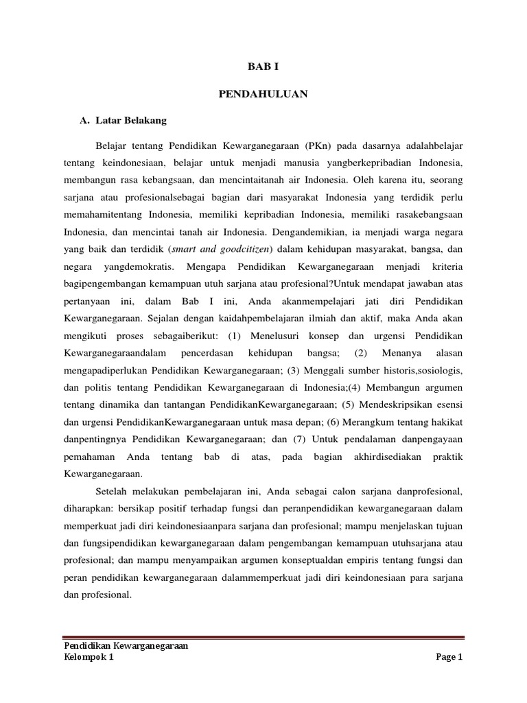 Bab I Pengantar Pendidikan Kewarganegaraan A Perkembangan