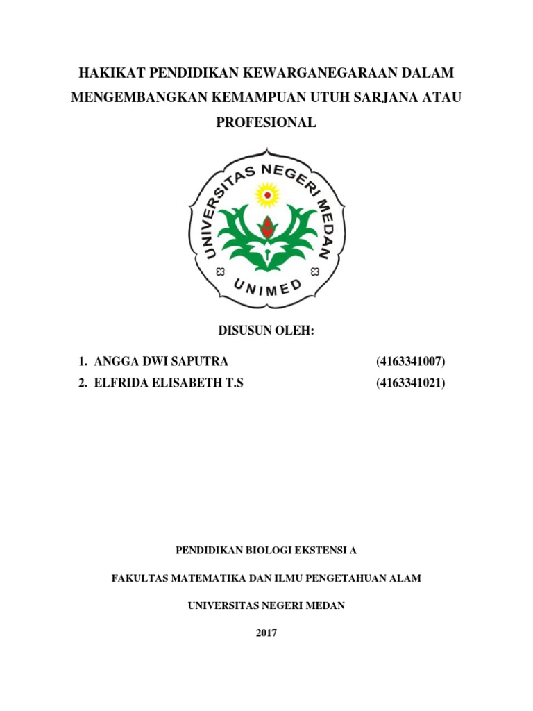 Hakikat Pendidikan Kewarganegaraan Dalam Mengembangkan Kemampuan Utuh Sarjana Atau Profesional