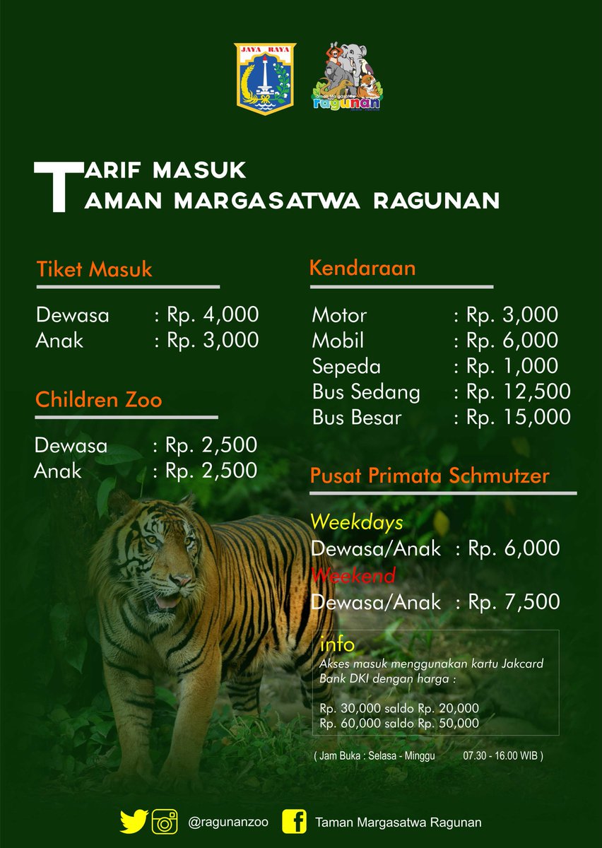 Ragunan Zoo On Twitter Berikut Adalah Tarif Masuk Taman Margasatwa