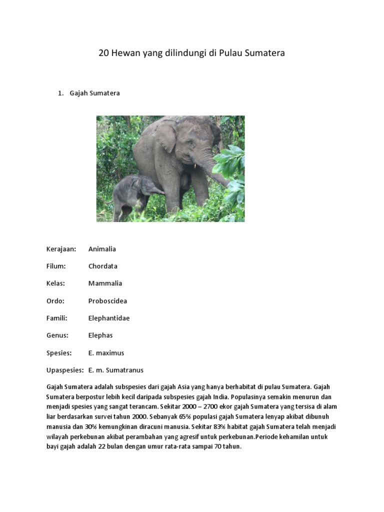 20 Hewan Yang Dilindungi Di Pulau Sumatera