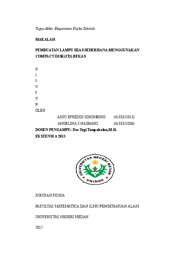 Tugas Eksperimen Fisika Sekolah Pembuatan Lampu Hias Sederhana