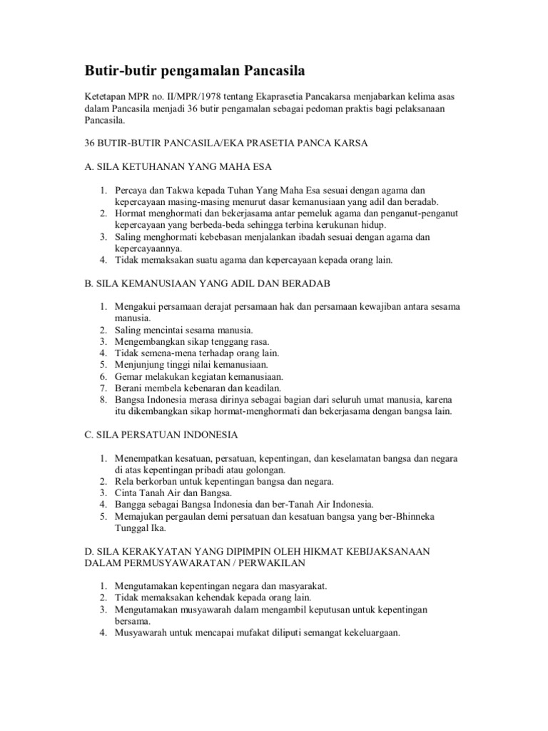 36 Butir Pengamalan Pancasila Srikandi Devi Academia Edu