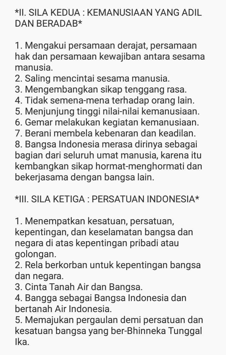 Hormat menghormati sesama manusia. Berasal dari kata panca yaitu lima dan sila yang berarti prinsip. Mengakui persamaan derajad persamaan hak dan kewajiban. Pancasila sila pertama yang berbunyi ketuhanan yang maha esa berarti bahwa negara mengakui adanya tuhan.