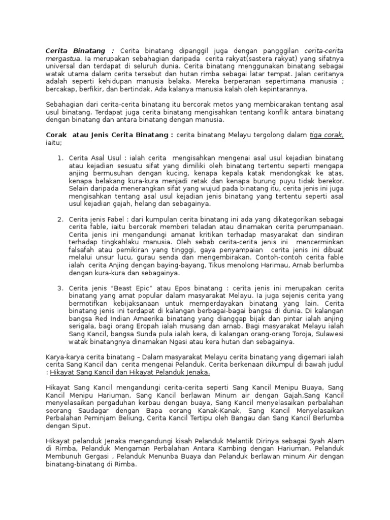 Sastera Melayu Tradisional Cerita Rakyat Cerita Binatang