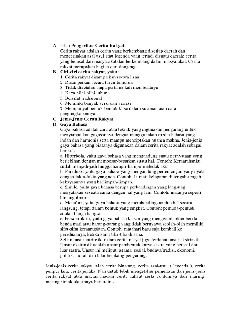 Pengertian Cerita Rakyat Beserta Ciri Jenis Dan Contohnya