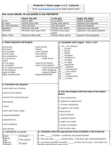 Jugar In The Preterite Sports Activities By Ashley Critchley Tpt