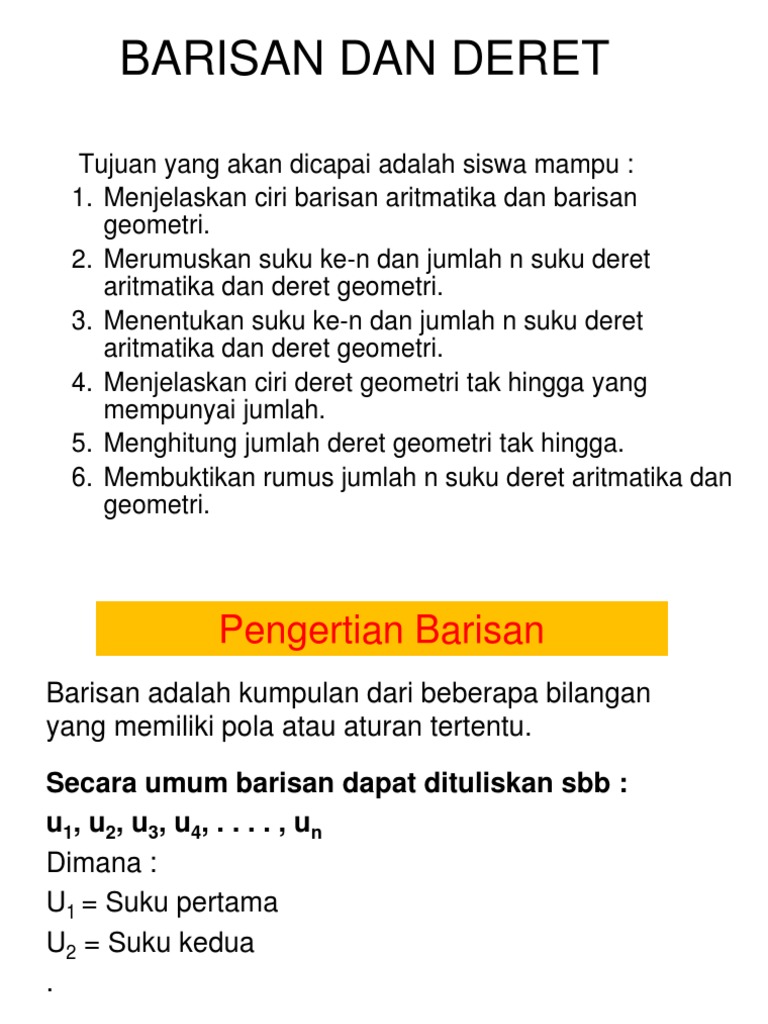 Barisan Dan Deret Tujuan Yang Akan Dicapai Adalah Siswa Mampu
