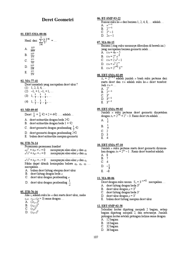 Soal Pg Bahas Jumlah Barisan Geometri Tak Hingga Suku Ganjil Genap