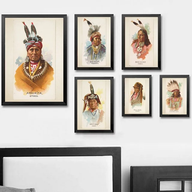 Amerika Kepala Suku Indian Retro Vintage Kanvas Poster Seni Lukisan