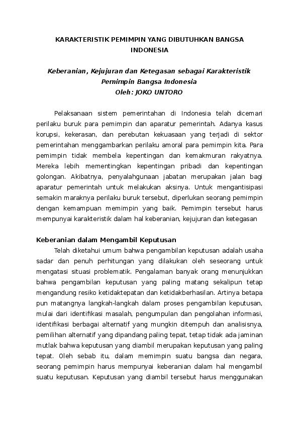 Karakteristik Pemimpin Yang Dibutuhkan Bangsa Indonesia Joko
