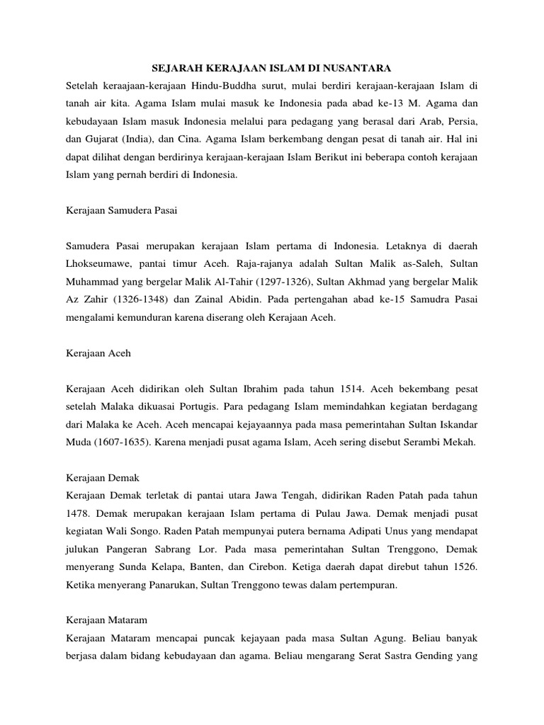Sejarah Kerajaan Islam Di Nusantara