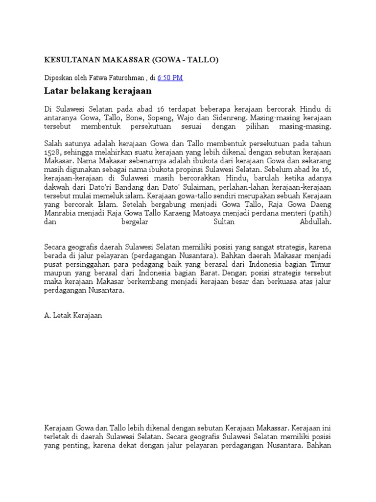 Kerajaan Di Indonesia Kesultanan Gowa Tallo Studi Islam 2