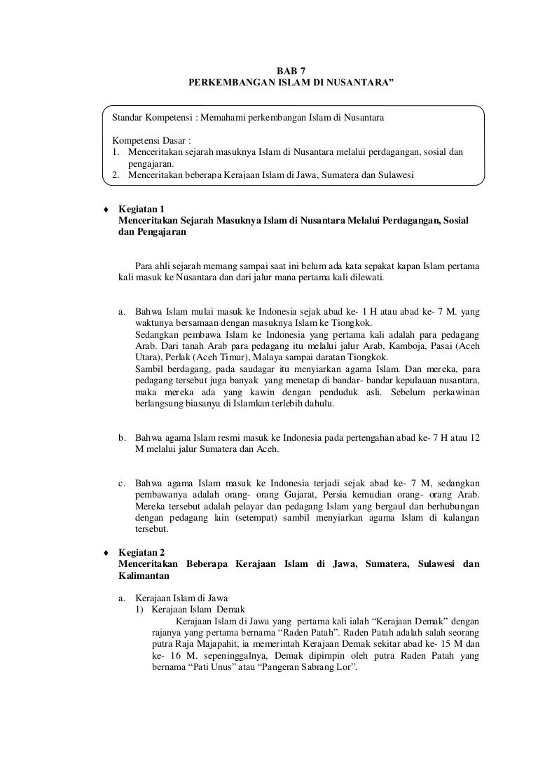 Bab 7 Perkembangan Islam Di Nusantara
