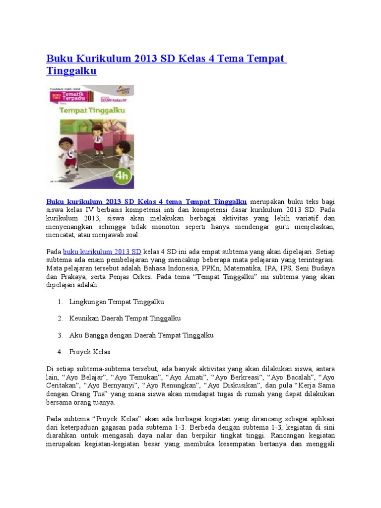 Buku Kurikulum 2013 Sd Kelas 4 Tema Tempat Tinggalku