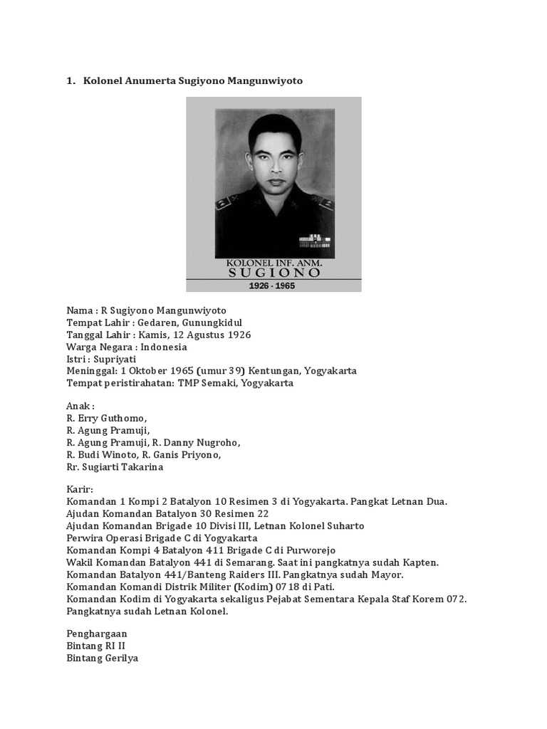 Biografi Para Pahlawan Kol Inf Anm Sugiono