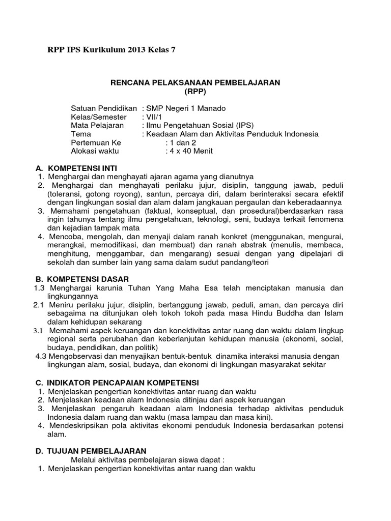 Rpp Ips Kurikulum 2013 Kelas 7