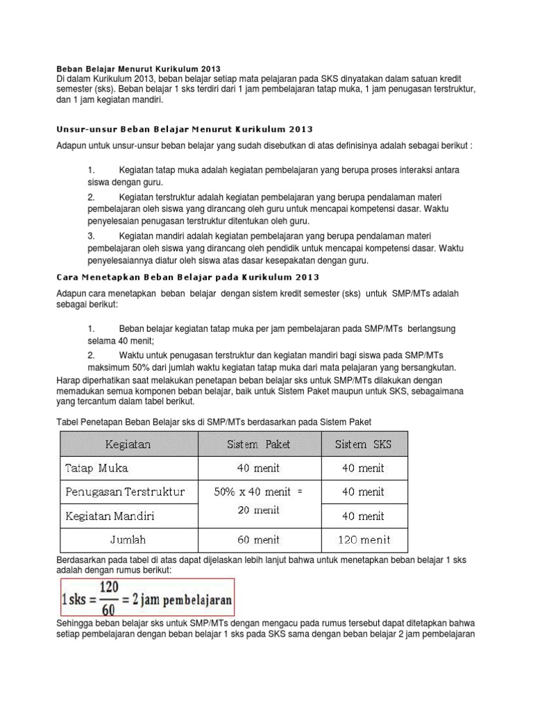 Beban Belajar Per Mata Pelajaran Kurikulum 2013