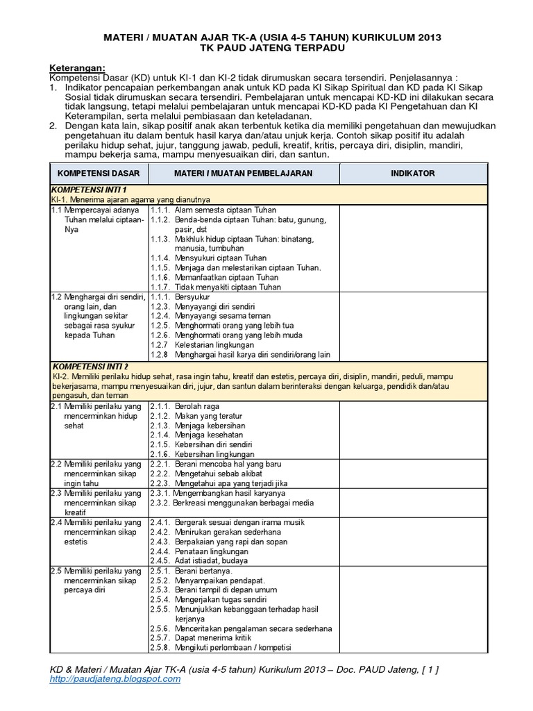 Contoh Dokumen 1 Kurikulum 2013 Paud Tk Tpa Kober Administrasi Paud