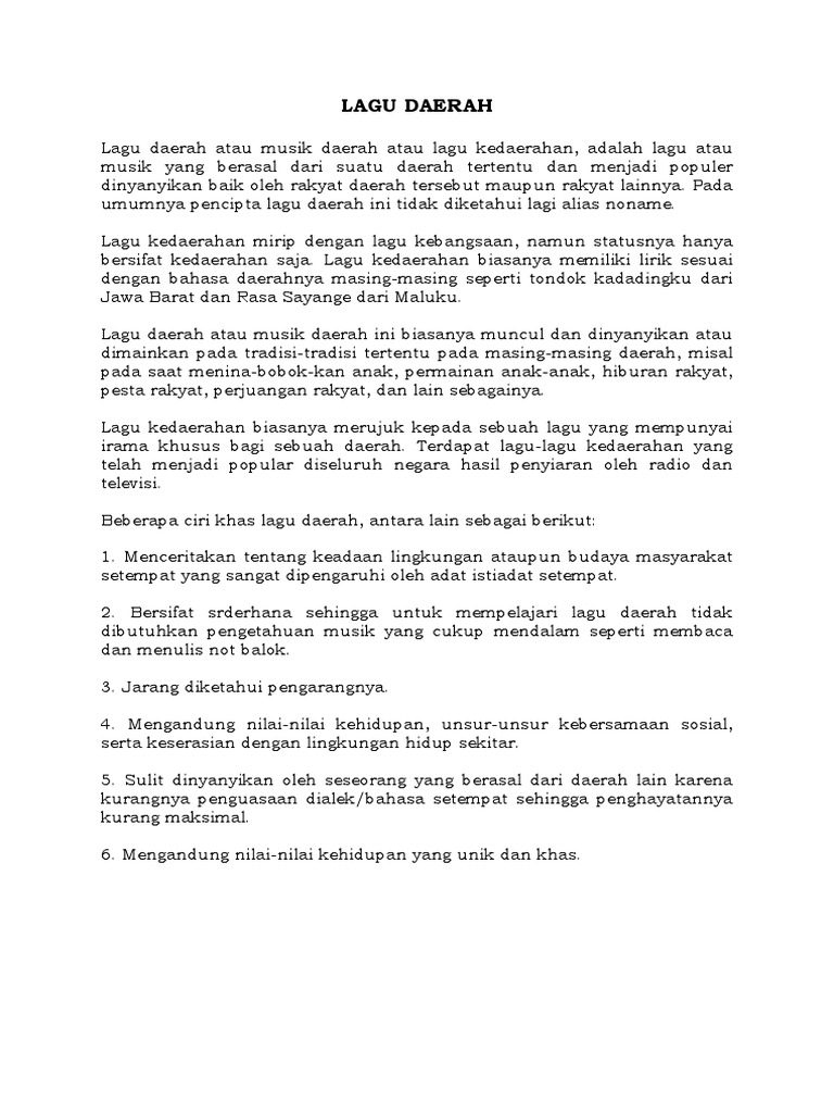 Lagu Lagu Daerah Di Indonesia Beserta Daerah Asalnya Ilmu