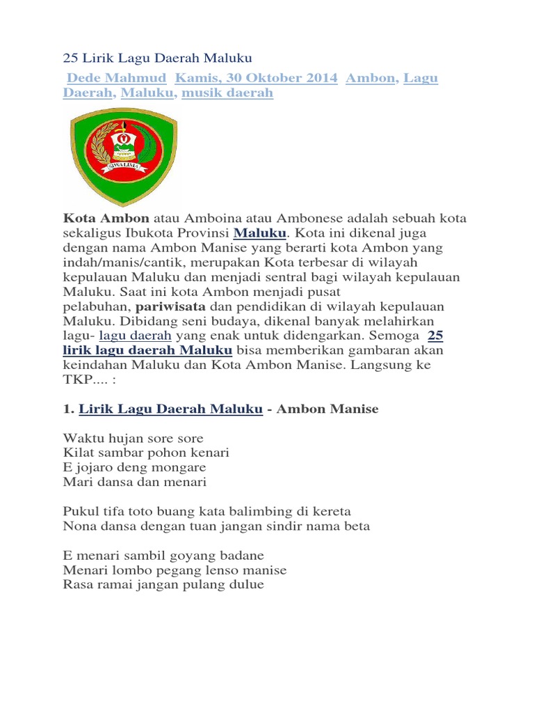 25 Lirik Lagu Daerah Maluku Tradisikita