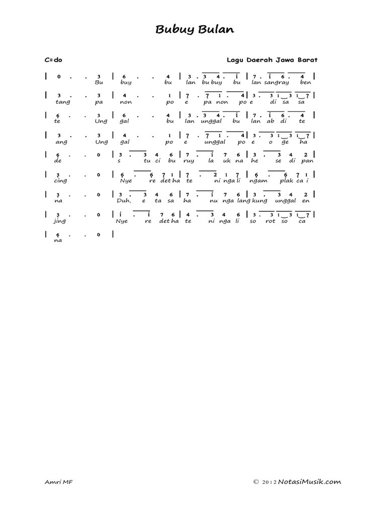 Not Angka Bubuy Bulan Jawa Barat Not Angka Lagu Indonesia