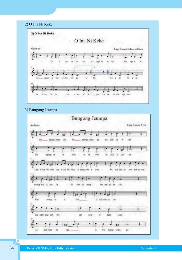 Not Angka O Ina Ni Keke Kumpulan Not Angka Lagu