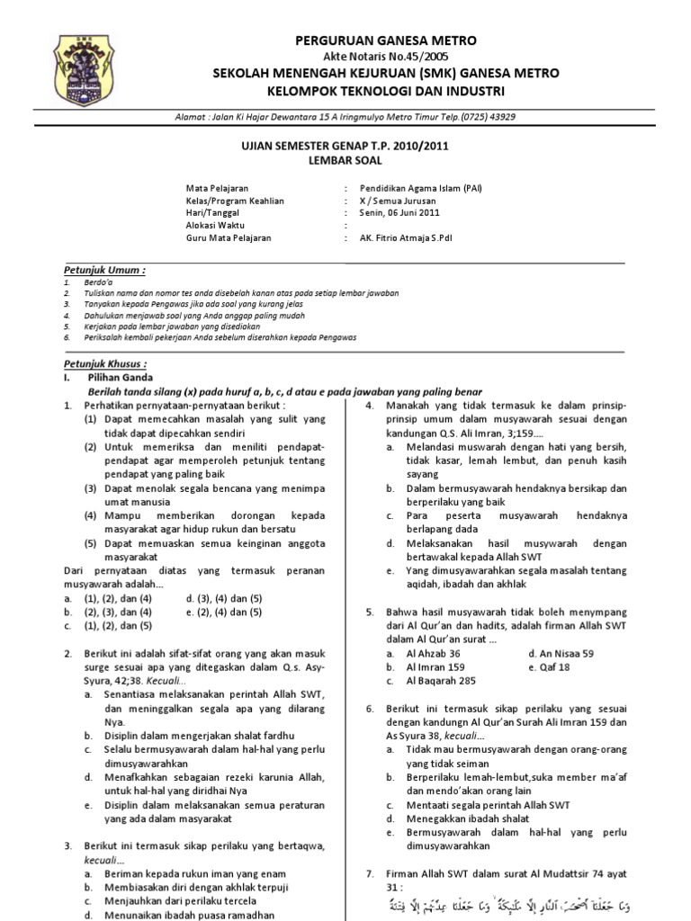 Soal Ujian Sekolah Sd Pendidikan Agama Islam Pai