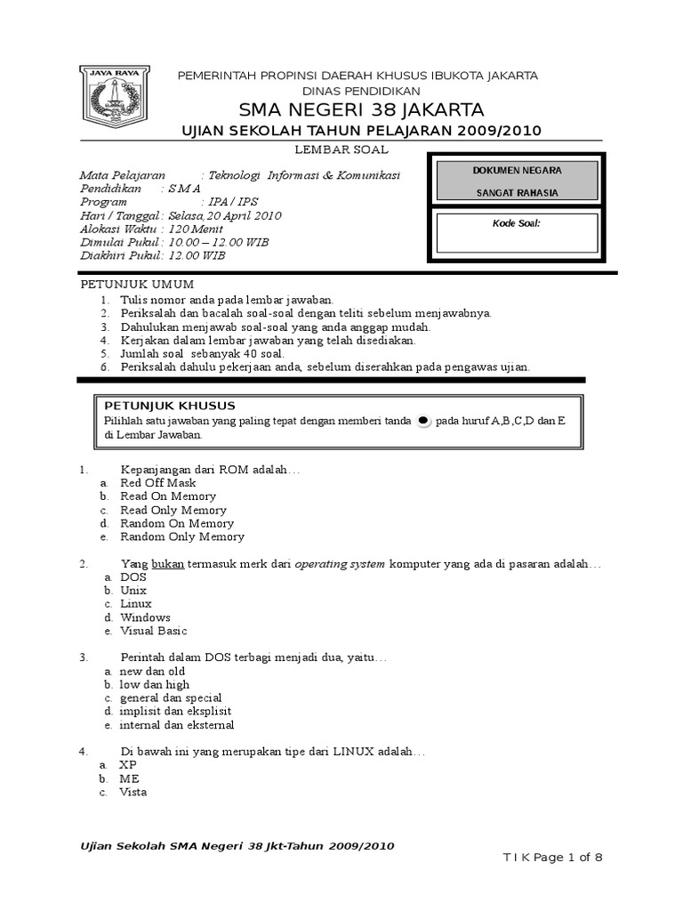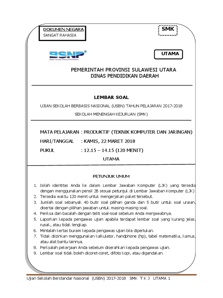 Ujian Sekolah Berstandar Nasional Smk Provinsi Jawa Barat Lembar