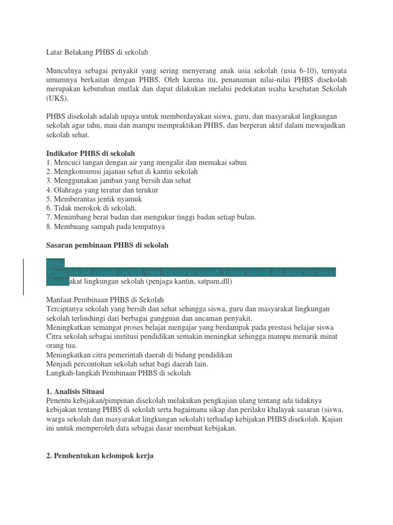 Latar Belakang Phbs Di Sekolah