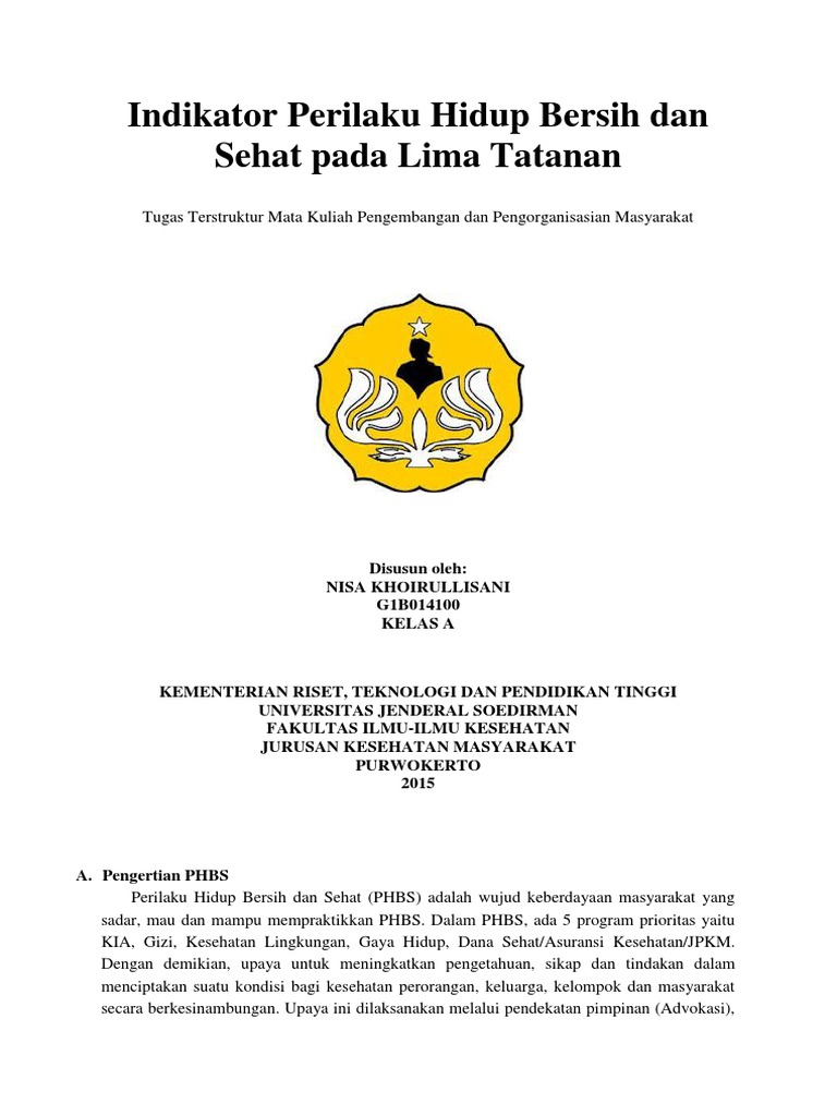 Indikator Perilaku Hidup Bersih Dan Sehat Pada Lima Tatanan