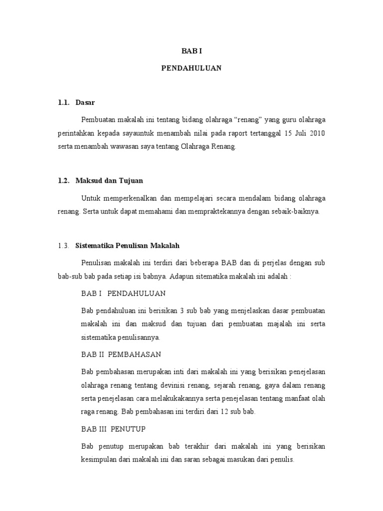 Contoh Makalah Olahraga Renang Yang Baik Dan Benar Baca Disini