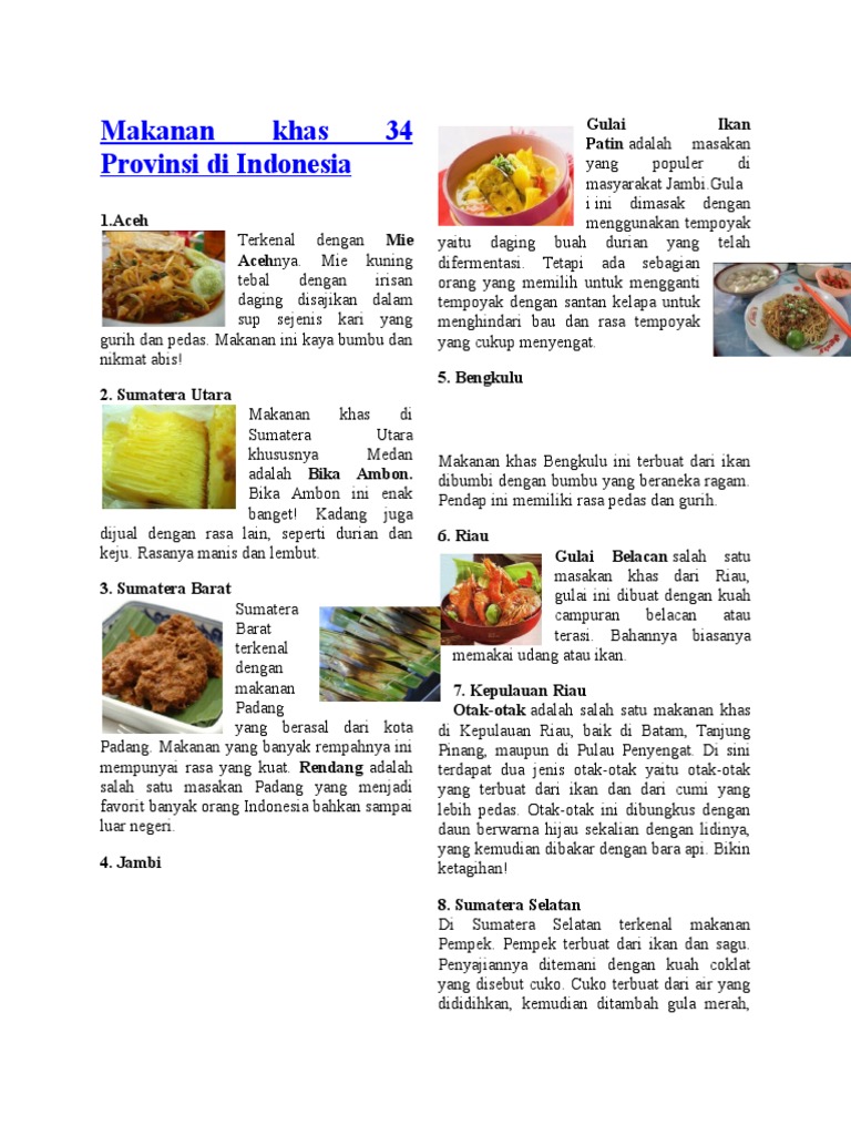 Jenis makanan khas 33 provinsi di indonesia negara indonesia merupakan negara besar yang beraneka ragam suku dan budaya dan terdiri dari ribuan. Makanan indonesia umumnya dimakan dengan. Eungkot kemamah merupakan makanan khas daerah aceh.