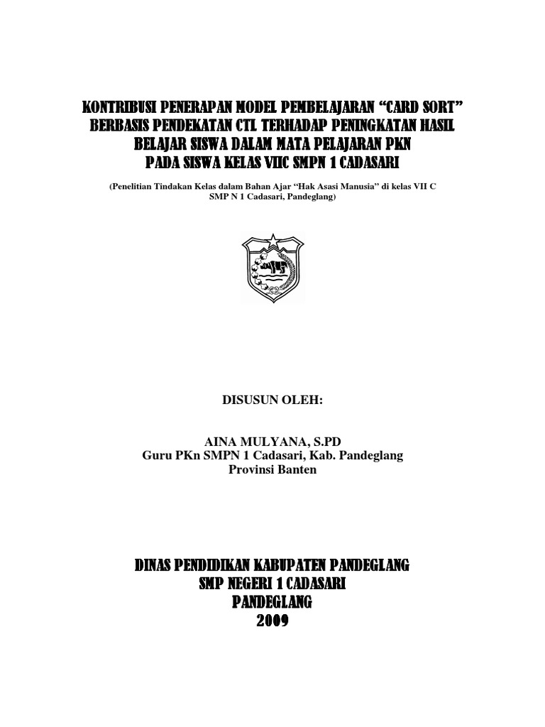 Contoh Judul Dan Laporan Ptk Pkn Smp Mts Kelas 7 Ilmuguru Org