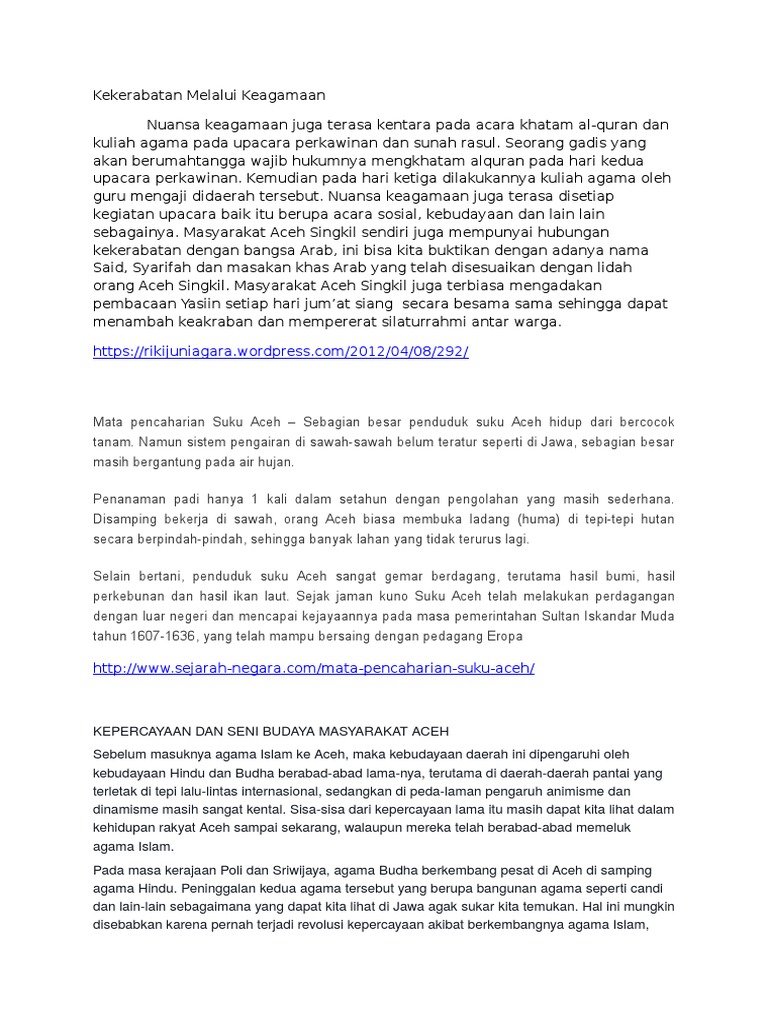 Sistem Mata Pencaharian Masyarakat Adat Aceh Bahasa Dan Sastra